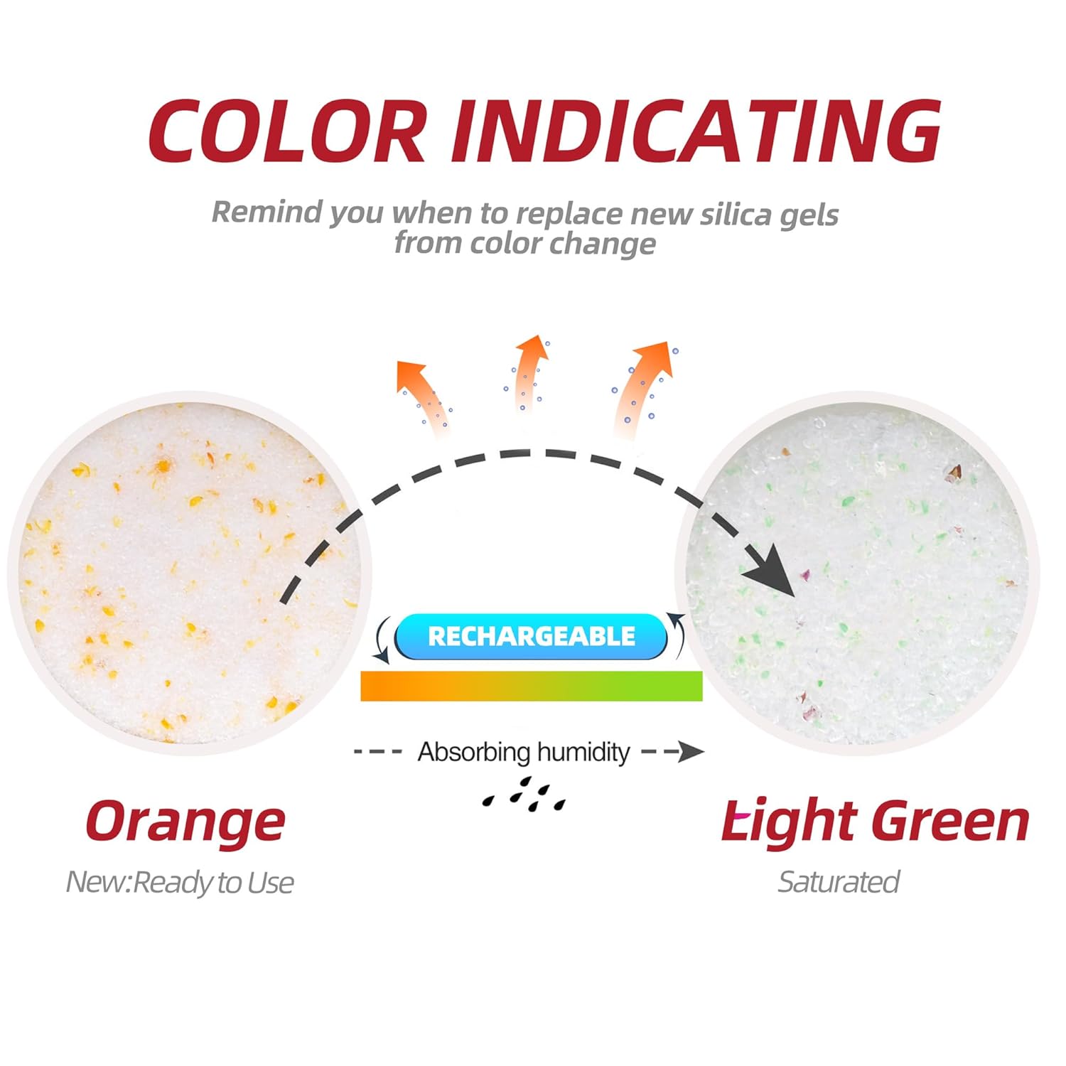 - Cobalt-Free Colour Indicator – A blend of 5% orange indicator crystals and 95% white silica gel. Crystals turn dark green when saturated — no guesswork, no harmful cobalt chloride.